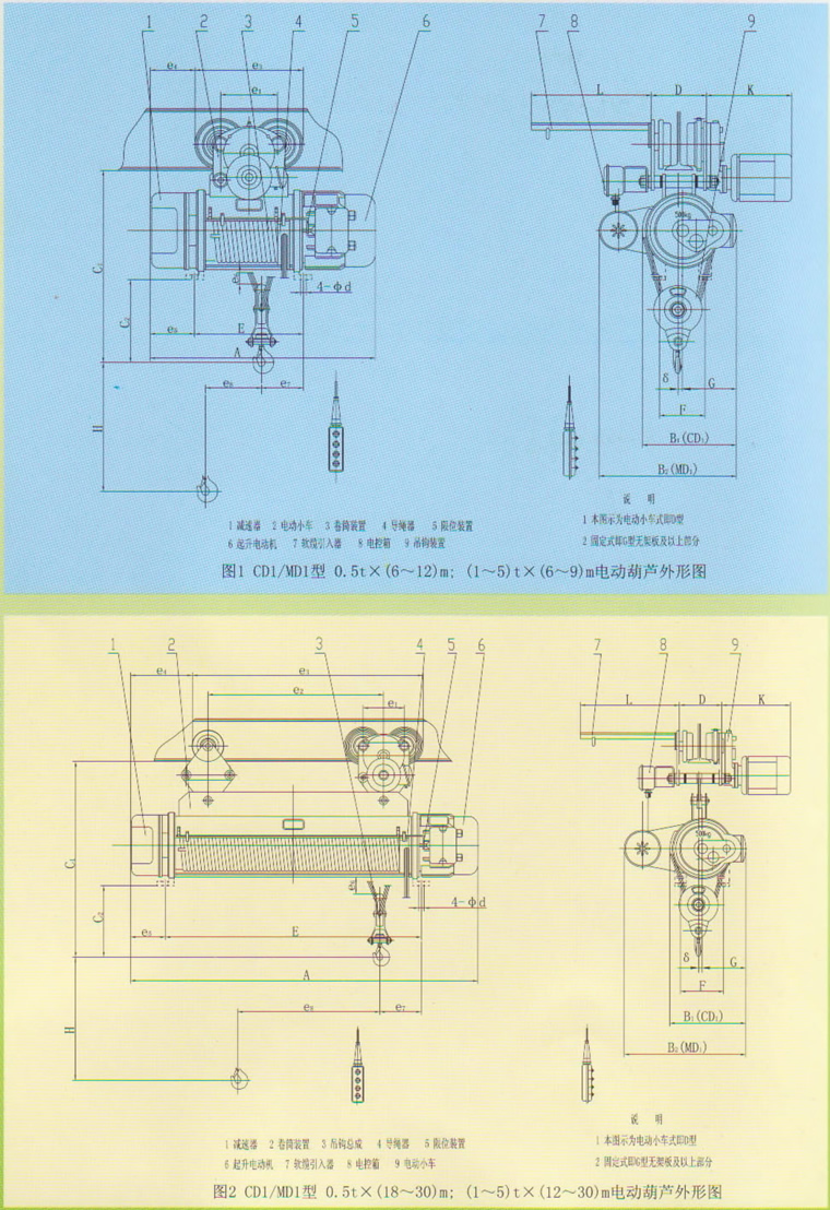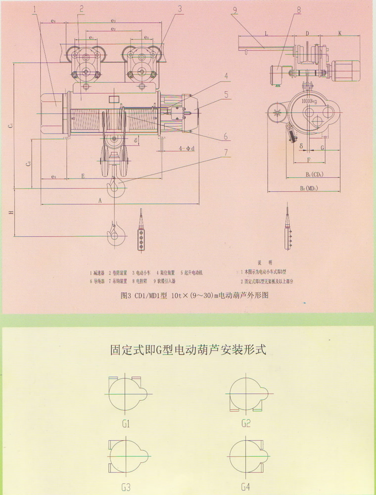 CD(MD)改進(jìn)型產(chǎn)品,質(zhì)量更加可靠:1、主要用途及適用范圍CDF(MDF)型鋼絲繩電動(dòng)葫蘆,根據(jù)GB3811《起重機(jī)設(shè)計(jì)規(guī)范》和JB/T9008.1~9008.6《鋼絲繩電動(dòng)葫蘆》在原CD、MD型基礎(chǔ)上的改進(jìn)型產(chǎn)品,該葫蘆有固定式和小車(chē)式兩類(lèi)。小車(chē)式葫蘆可安裝在多種形式的起重機(jī)上或懸掛在工字鋼梁上,直線或曲線往復(fù)吊運(yùn)重物,固定式葫蘆可安裝在固定支撐上作垂直的或不同角度的卷?yè)P(yáng)起吊用。工作級(jí)別M3~M4,適用于接電持續(xù)率25~50% 、每小時(shí)接電次數(shù)120~300次等頻繁起制動(dòng)狀態(tài)工作。 2. 工作條件海撥不超過(guò)1000m。環(huán)境空氣溫度為-25℃~+40℃。 環(huán)境空氣相對(duì)濕度不超過(guò)85%(+25℃),無(wú)腐蝕性氣體,不宜吊運(yùn)高溫或有毒、易燃和易爆物品。 電源額定電壓為380V,額定頻率為50Hz。