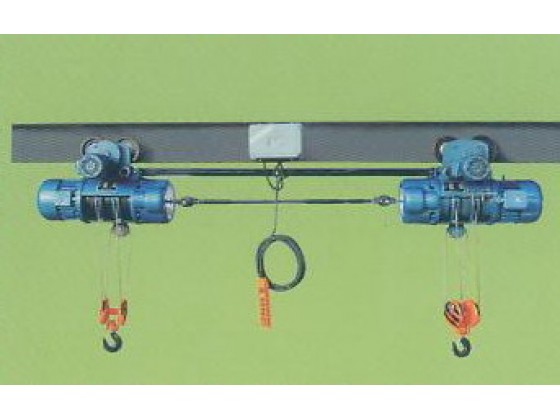 最大40t+40t,手動電動兩用,機械電氣同部。雙吊點電動葫蘆產(chǎn)品 QBH 型雙吊點電動葫蘆是我公司根據(jù)市場需求研發(fā)的一種水利閘門啟閉用的專用設(shè)備,也可用于類似抬吊的場合。 示例:QBH5+5-18-B指雙吊點5t+5t起升高度為18米的運行式電動葫蘆。 特點 該設(shè)備通過機械及電氣同步,通過萬向節(jié)連接,強制起升電機轉(zhuǎn)速同步,而且兩臺電動葫蘆采用一套電氣控制系統(tǒng),克服了電氣動作誤差,從而保證兩臺電動葫蘆同時升降起吊重物,另外,設(shè)備組合方便,便于增加如超載限制、高度顯示及遙控等輔助功能。 業(yè)績 河北水利水電管理局水工一處,鄭州起重機械公司,南京鋼鐵公司,衡陽鋼管廠,杭州鋼鐵公司,杭州機械設(shè)計研究院,邯鄲鋼鐵公司,北京水工機械廠等。